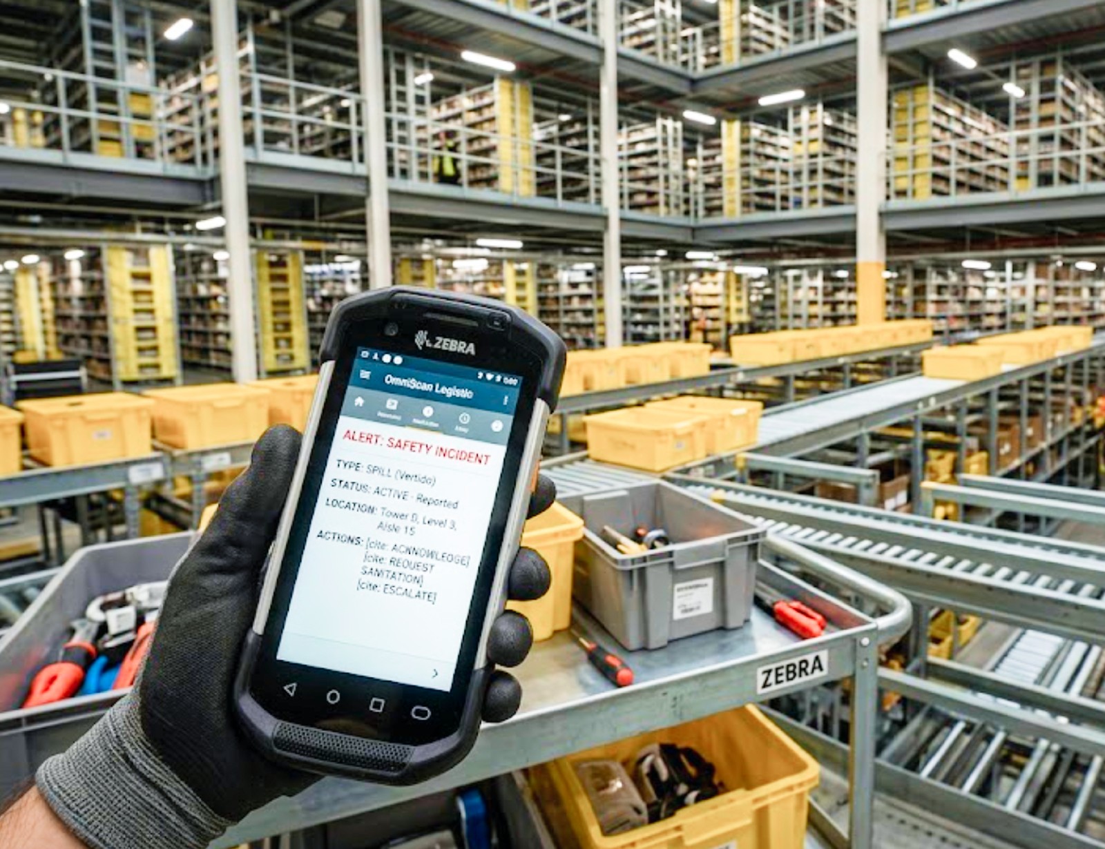 En una Picktower masiva de 5 plantas, reportar un incidente (un vertido, un compañero herido o un fallo técnico) suponía minutos vitales perdidos buscando ayuda. Esta ineficiencia generaba: